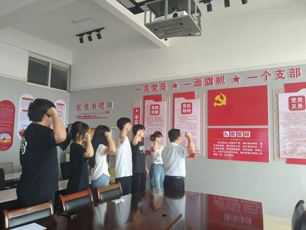 “我志愿加入中国共产党,拥护党的纲领,遵守党的章程,履行党员义务,执行党的决定,严守党的纪律,保守党的秘密,对党忠诚,积极工作,为共产主义奋斗终身,随时准备为党和人民牺牲一切,永不叛党。”在领誓人肖国光书记的带领下,党支部成员和全体预备党员们列队面向党旗,举起右手,齐肩握拳,庄严宣誓。他们的声音整齐而洪亮,眼神中透露出坚定的信念和对未来的无限憧憬。