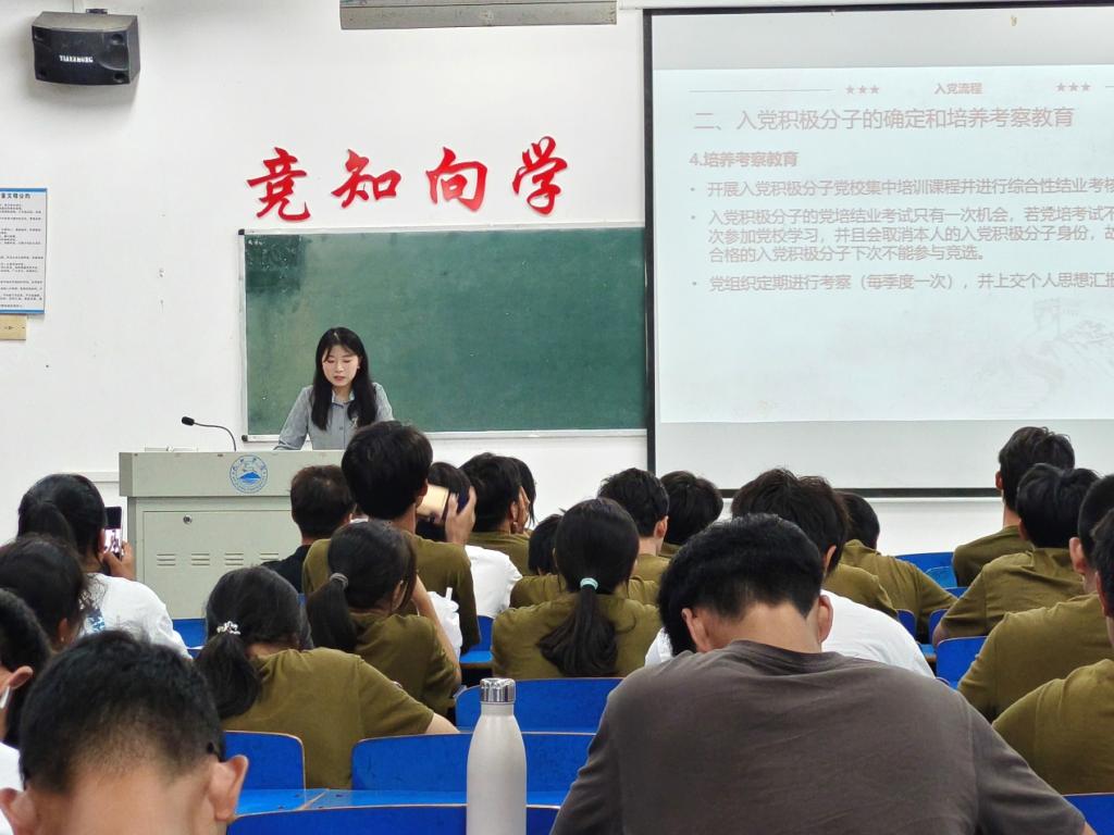 此次宣讲活动内容丰富、讲解清晰,现场互动积极,新生们认真聆听并踊跃提问。活动不仅使同学们对入党流程有了全面了解,更有效激发了大家的政治热情和入党意愿。许多同学表示,通过此次培训,更加坚定了向党组织靠拢的决心,将在今后的学习和生活中严格要求自己,积极进取,为争取早日成为一名合格的共产党员而不懈努力。本次活动为学院基层党组织建设注入了新的活力,奠定了坚实基础。