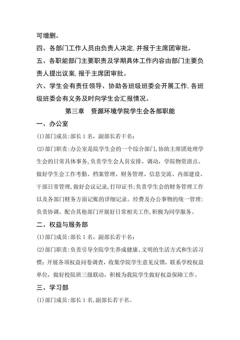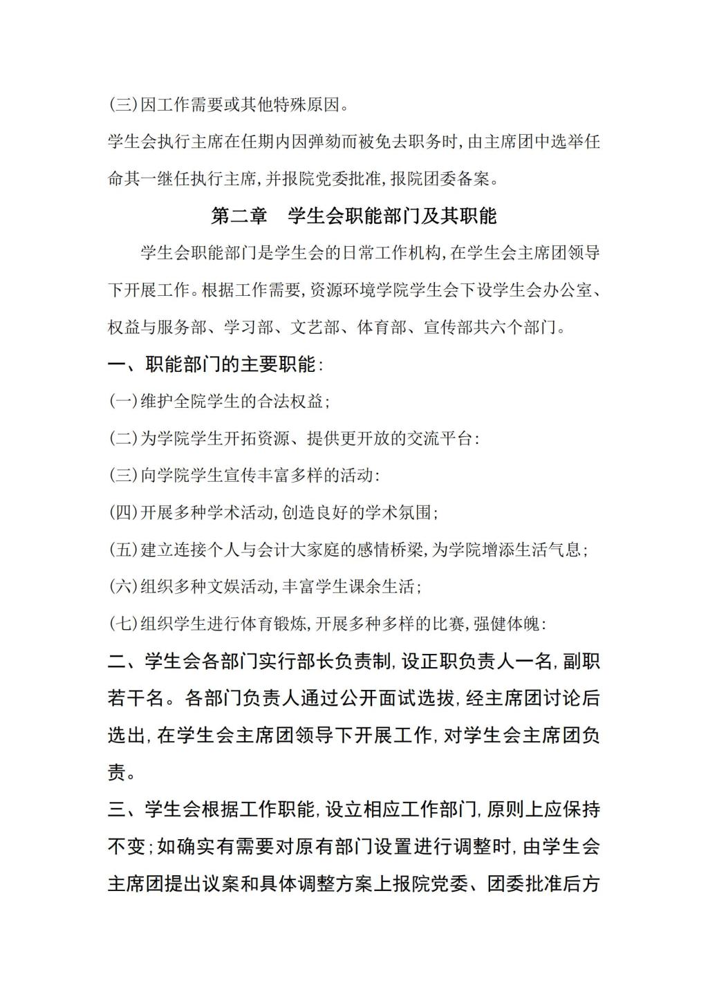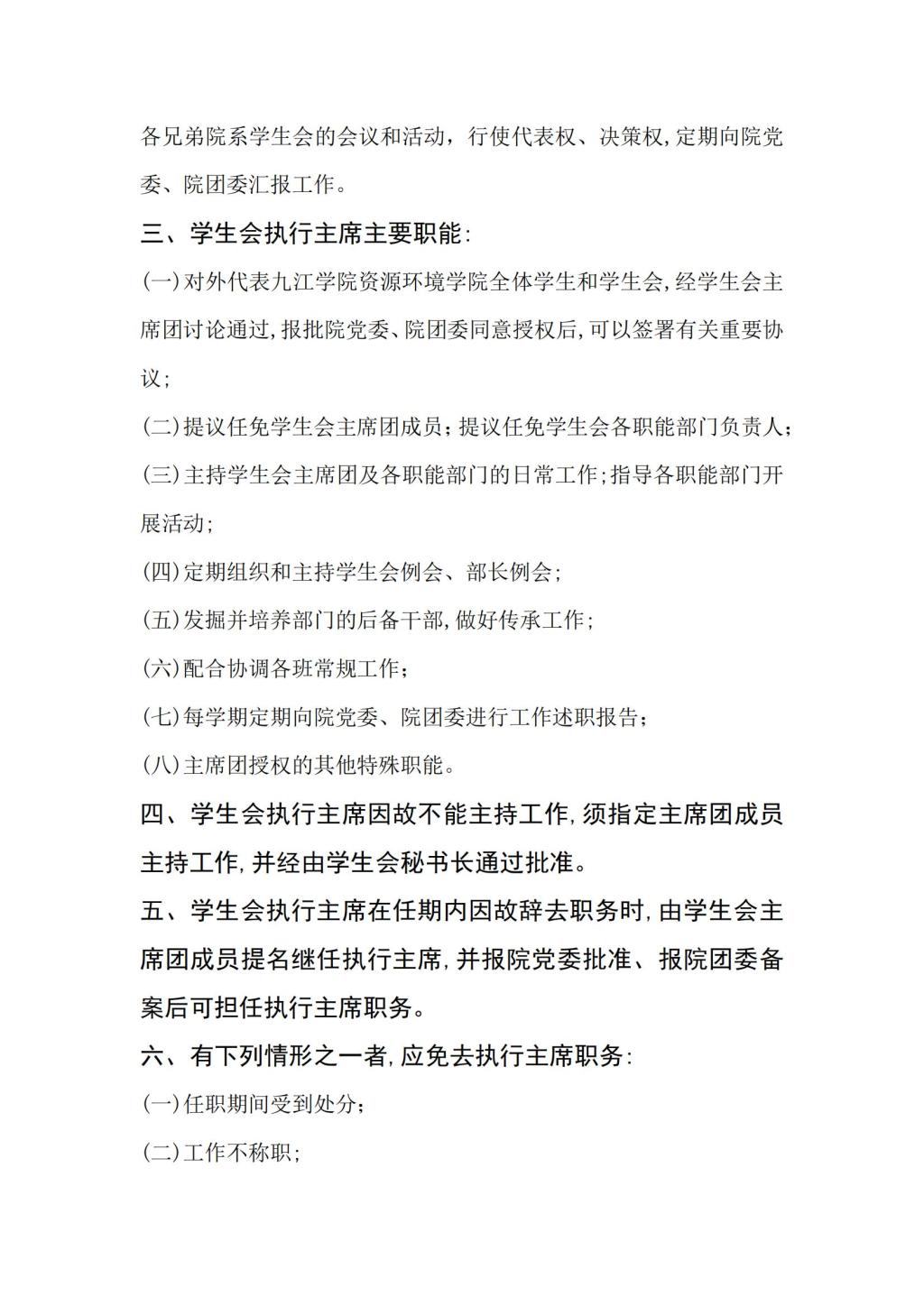 根据上级文件指示,对学生会工作进行规范和改革。严格落实“学生代表大会制度”,组织架构上对部门数量进行整合,对学院主席团和学生会人数及身份进行了严格规范及审查,对学生会工作进行“去中心化”和“去行政化”改革。