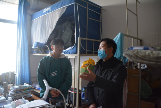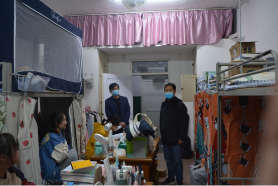 在排查宿舍安全问题中,杨书记强调了宿舍用电安全问题,以及让同学们深刻了解“119”消防宣传的重要性。他着重提出了宿舍卫生问题,告诉同学们“宿舍是小家”,让同学们更重视宿舍的卫生清洁。杨书记还关心同学们的学习生活,鼓励同学们多外出运动,享受各个季节的风光;图书馆和教学楼更适合学习,宿舍则是温馨的家,希望同学们爱护宿舍,营造一个温馨的宿舍氛围。