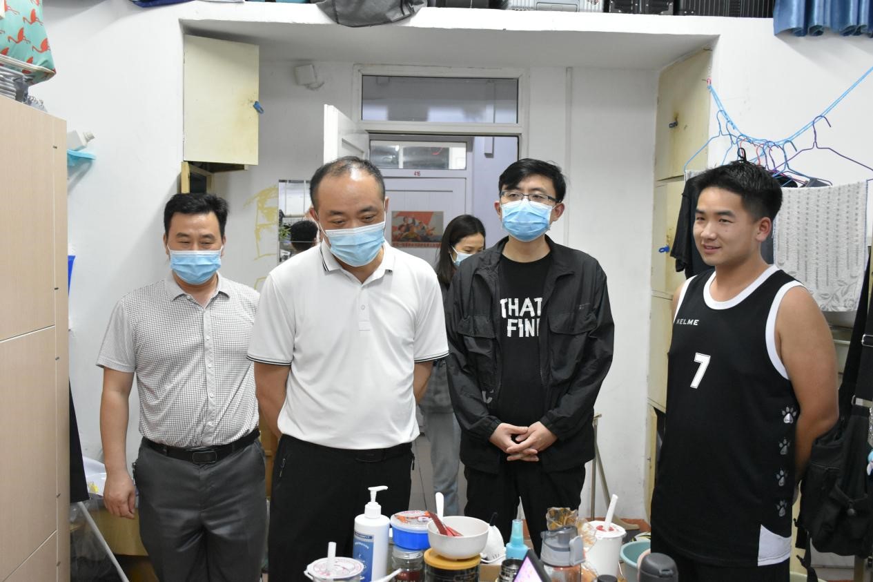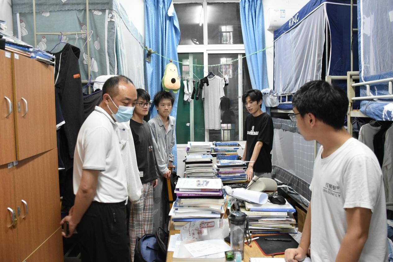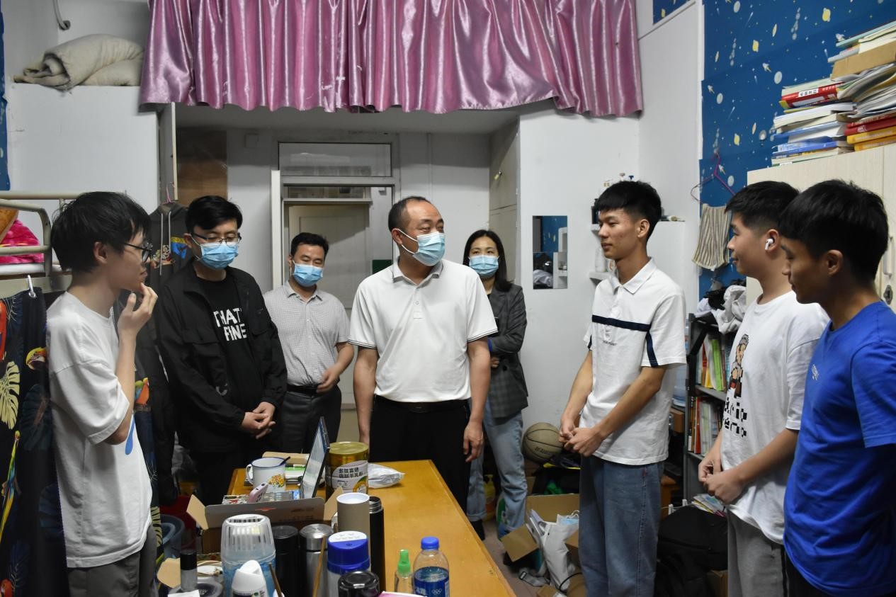 为深入了解疫情防控期间学生生活情况和身心状态,5月8日晚,Ky开元集团院长汤明、党委副书记张杨帆、学生思政教育科副科长肖国光、学生管理科科长龚双双等相关科室负责人深入学生宿舍走访,与学生进行亲切交谈,倾听学生心声,解决学生诉求。
