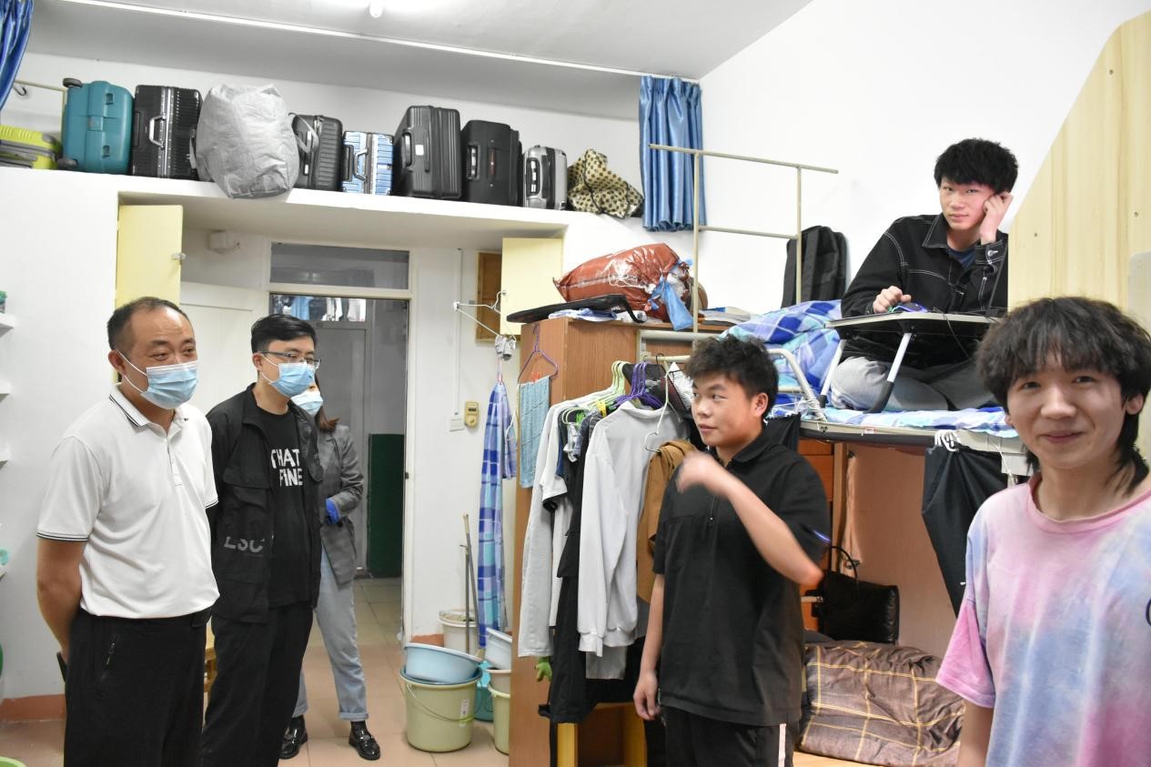 每来到一间寝室,汤院长都认真仔细地查看寝室卫生是否整洁、配置的物品是否齐全、是否存在安全隐患,与同学们面对面亲切交谈,详细了解同学们的身体,并叮嘱同学们严格遵守学校疫情防控相关要求,做好个人防护,戴口罩、勤通风,保持良好的宿舍卫生。同时,耐心询问同学们现阶段疫情防控期间在学校学习、生活上遇到的困难。