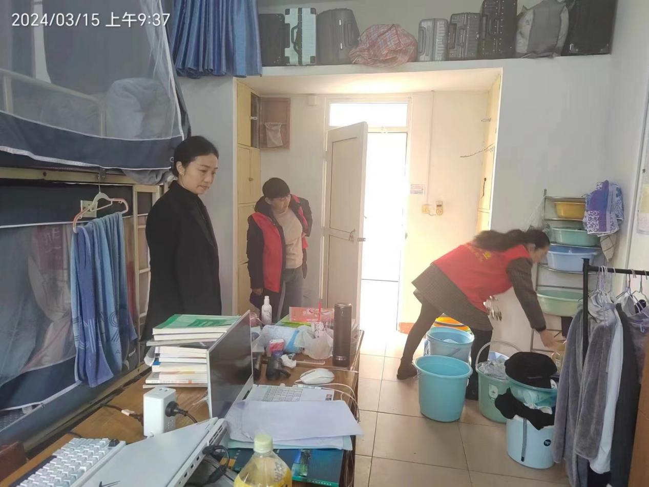 3月3日-15日,学院学生管理科科长龚双双带队宿管及学生会成员深入每位学生宿舍排查宿舍安全隐患,检查消防安全,同时与同学们强调了宿舍用电安全及防护措施,提升学生消防安全意识。与此同时,开元官网学生会相关部门每天早上都会对各寝室进行例行检查,包括宿舍卫生、消防安全及用电安全检查,确保人走电断,为开元官网学子校园安全保驾护航。