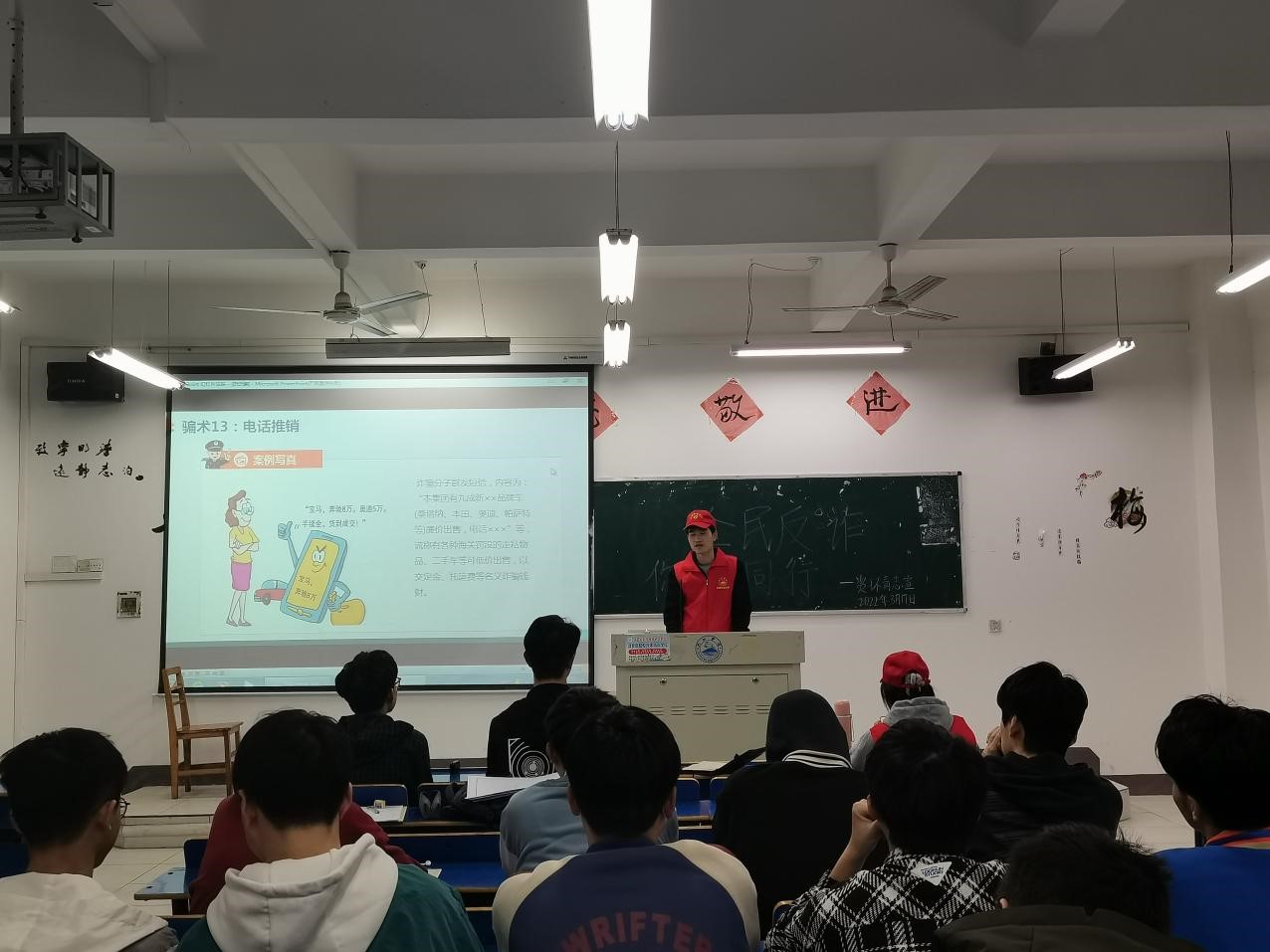 活动中,学生志愿者们分成几个小分队,向各班级宣讲防诈知识,并讲述诈骗犯罪分子惯用的手法。此外特别提醒他们不要轻信来历不明的电话或者短信,不要点击陌生的链接和提供验证码,更不要向陌生人账户转账汇款,一旦发现上当受骗,一定要及时报警。