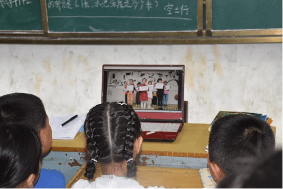 (带队老师向校长了解小学的基本情况,队员给学生推广普通话)