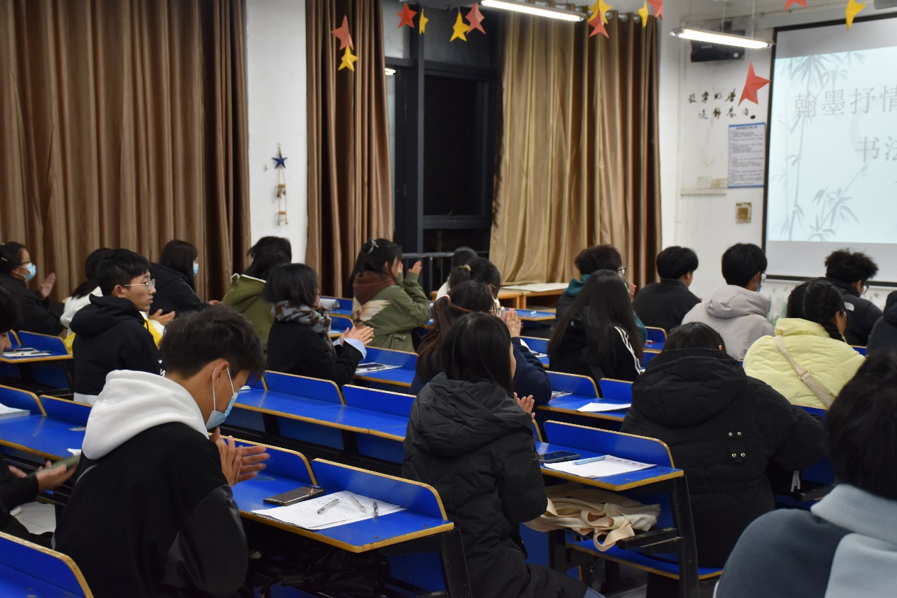 本次活动的开展提高了同学们对书法艺术的学习兴趣,增强了审美能力,丰富了大学生的课余文化生活。同时,身为当代大学生的我们应学习宣传贯彻党的二十大精神,深入领会精神实质,切实做到学深学透、融会贯通,确保党的二十大精神入脑入心、落地落实。