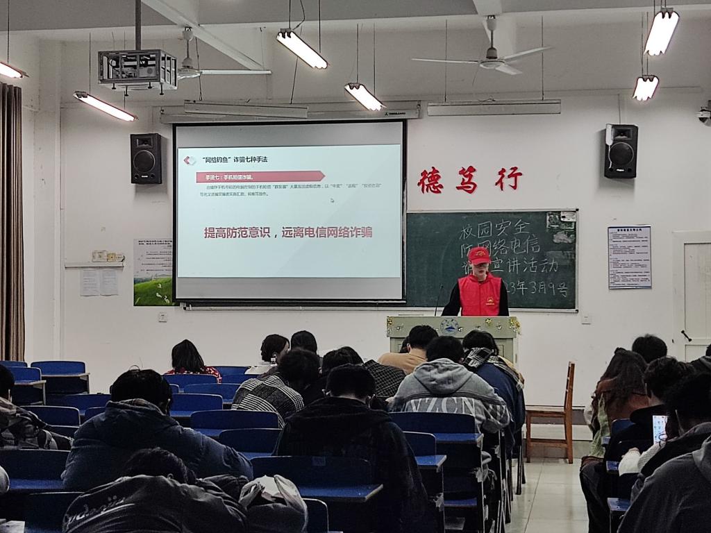 为进一步做好校园网络电信诈骗防范工作,构建和谐平安校园,切实做好电信网络诈骗的防范教育工作,3月9日晚,Ky开元集团在厚德楼各班固定教室开展“你我同心,反诈同行”防电信网络诈骗志愿宣讲活动。