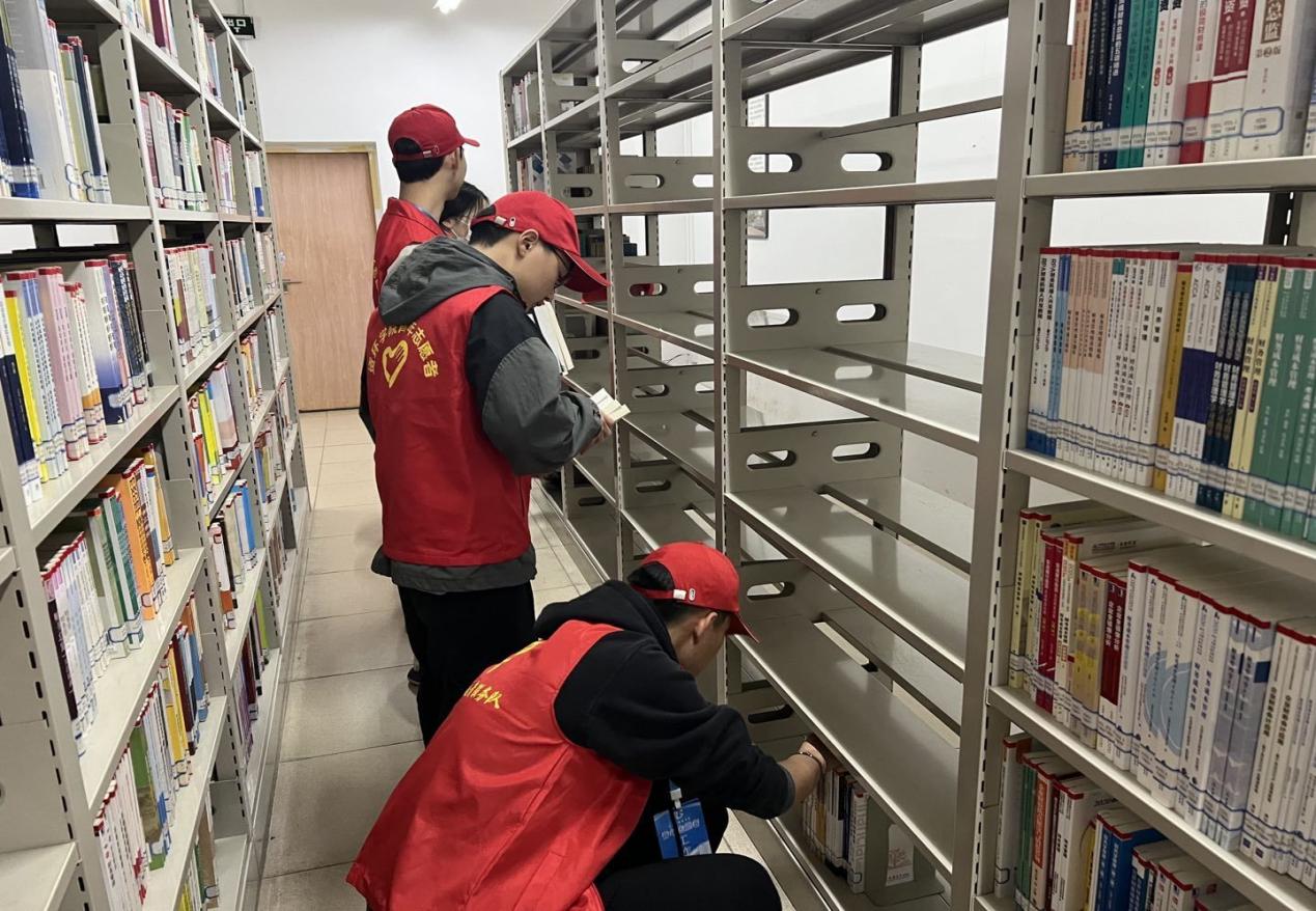 志愿者们听从老师的安排,明确了自己的工作任务之后,各小组在各自区域开始了有条不紊的工作:认真清理书架并打扫卫生,细心地将书籍分类摆放,分工合作积极高效,帮助图书馆管理人员减去繁重的工作任务,踏踏实实地践行了志愿者精神。