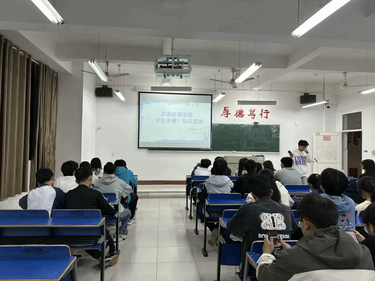 开元官网于2023年10月26日晚组织各班开展了学习《学生手册》主题班会,通过各班班长讲解学生手册让同学们更加清楚的了解关于学校的的规章制度以及对大学的学业要求。同时,资环学院于11月6日组织开展了学生手册答题知识竞赛,通过作答和抢答的方式加深学生对学生手册的了解。这次知识竞赛提高了同学们的应变能力,促进学生更加深入研读学生手册内容,培养了学生综合素养,为将来的大学学习生活打下坚实基础。