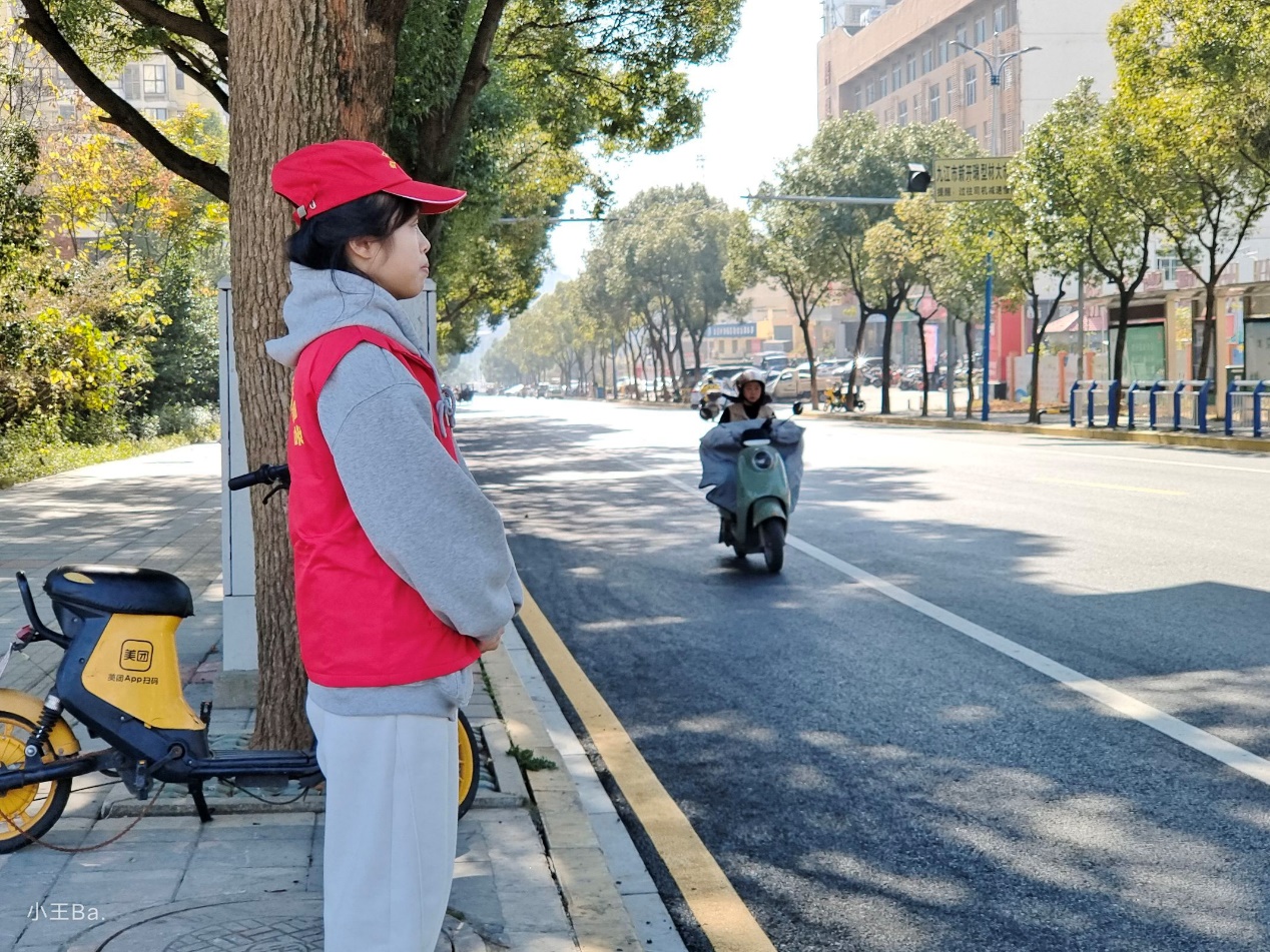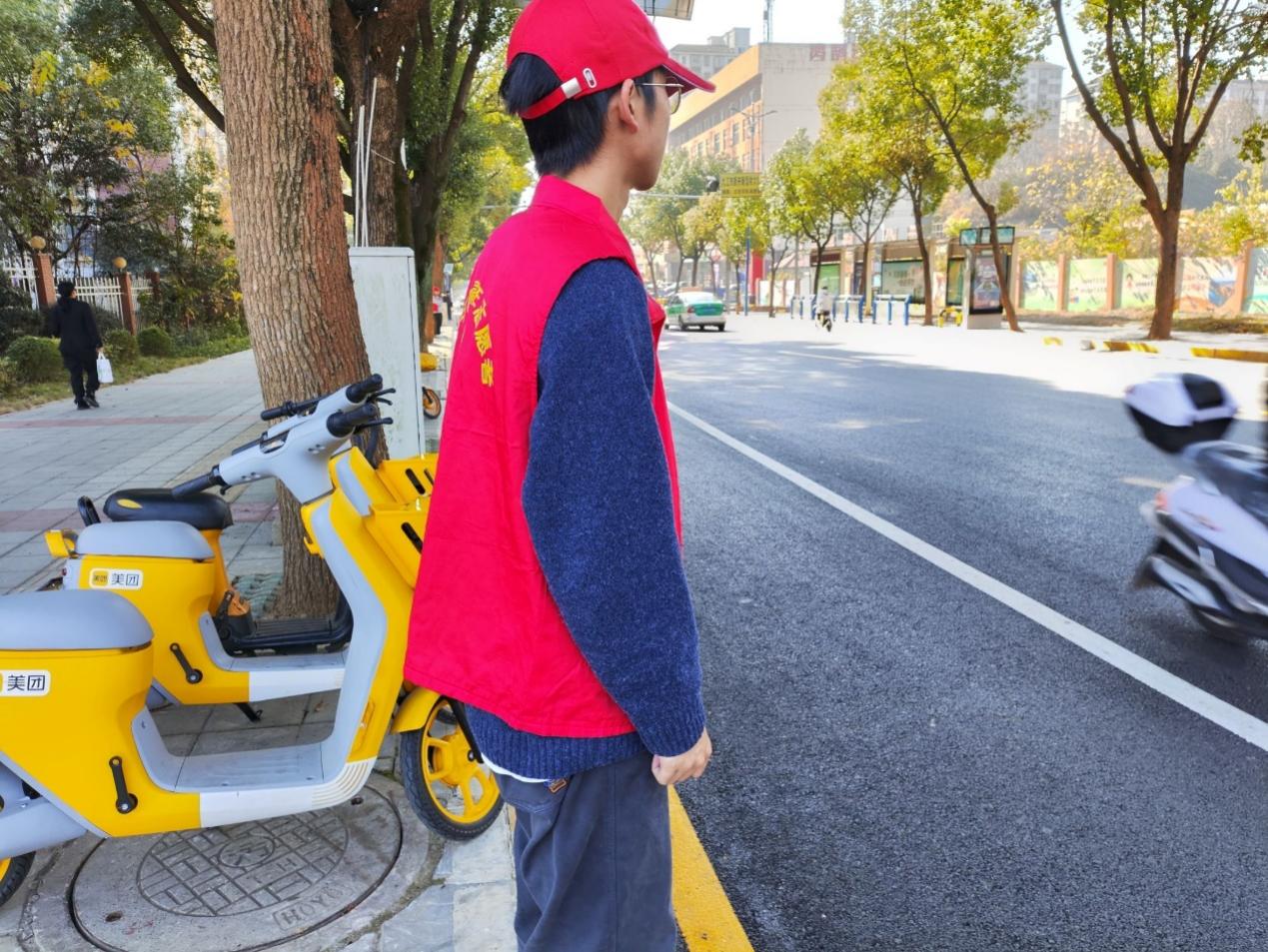 志愿者们在学校西门口督促大家规范使用共享电动车,耐心讲解了规范使用电动车的做法,积极引导大家用实际行动践行文明交通,为我们的城市增添光彩,共同构建安全,和谐,有序的交通环境。