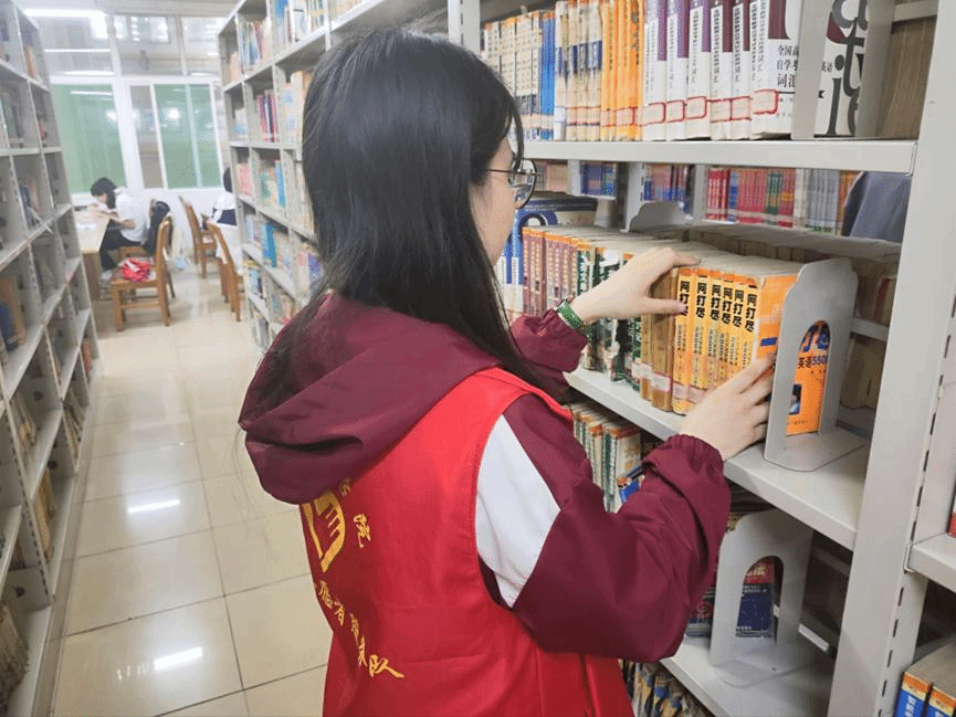 在此次志愿活动负责人的带领下,志愿者们组成多个小组,开始为图书分类摆放,擦书架等工作。志愿者们积极完成自己的工作,而且耐心解答同学关于图书位置的问题。在活动过程中,志愿者们分工明细,配合默契,出色地完成自己的任务,让图书馆的环境变得干净,整洁和卫生。