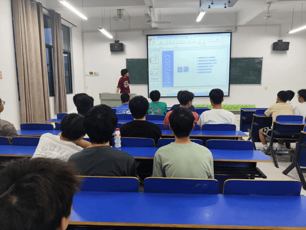 活动开始,团支书带领全班同学唱响团歌。随后,团支书引入本期团日活动主题。活动中,团支书组织同学们一同观看关于心理健康教育的视频,让同学们更深入地了解到心理健康教育的意义以及重要性。随后,团支书通过玩游戏的方式活跃现场气氛,不仅提高了同学们的积极性,还增强了同学们之间的联系,加深了彼此的感情和思想的交流。接下来,团支书结合本次团日活动主题,分享了更多心理健康新知识,破除同学们对心理咨询的一些误解。同学们也踊跃发言,纷纷表示自己能够更好地增强维护自身心理健康的意识,同时也能更好地认识到自身的心理状况。心理委员以大学生们常见的心理问题为切入点展开探讨。分别从四个部分,即:大学生心理健康、大学生心理健康的意义、大学生心理特点与问题以及大学生心理健康的维护进行深入开展,用生动诙谐的语言方式向大家讲述ppt上的相关内容,让同学们都更好理解有关心理健康的相关内容。