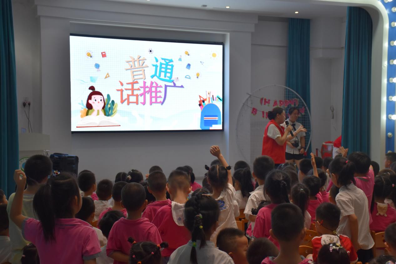 为引导幼儿规范化语言表达,7月9日,Ky开元集团普通话推广队走进九江市濂溪区万达广电幼儿园,向幼儿园小朋友们呈现了一个生动活泼的知识宣讲。