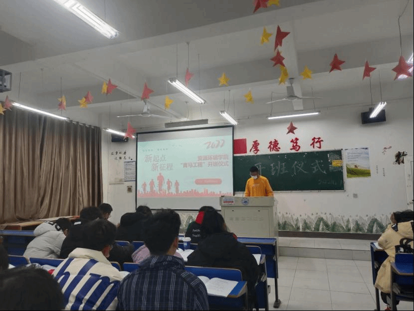 为深入学习宣传贯彻党的二十大精神,切实发挥“青马工程”为党育人政治功能,着力为党培养和输送一批具有忠诚政治品格、浓厚家国情怀、扎实理论功底的大学生政治骨干人才。12月1日晚,资环学院2022年“青马工程”大学生培训班开班仪式在香远楼405室举办。