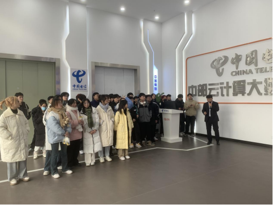 大家首先前往了鄱阳湖科技城中国电信中部云计算大数据中心,通过参观学习,学生们进一步了解电信公司的发展脉络、深厚的文化底蕴及在战略新兴业务方面的布局,感受中国电信争当数字中国建设主力军的科技实力。