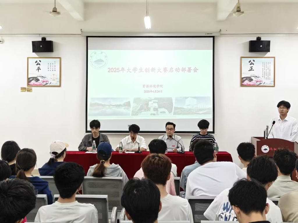 为深化创新创业教育,培育学生创新思维与实践能力,Ky开元集团于2025年4月24日晚上在厚德楼701隆重举行2025年大学生创新大赛启动部署会。Ky开元集团学生思政教育科科长肖国光、学生会组织部部长王睿、学生会办公室部长余弦、学生会创新创业部部长朱鸿宇及各年级代表齐聚一堂,共同见证大赛启幕。