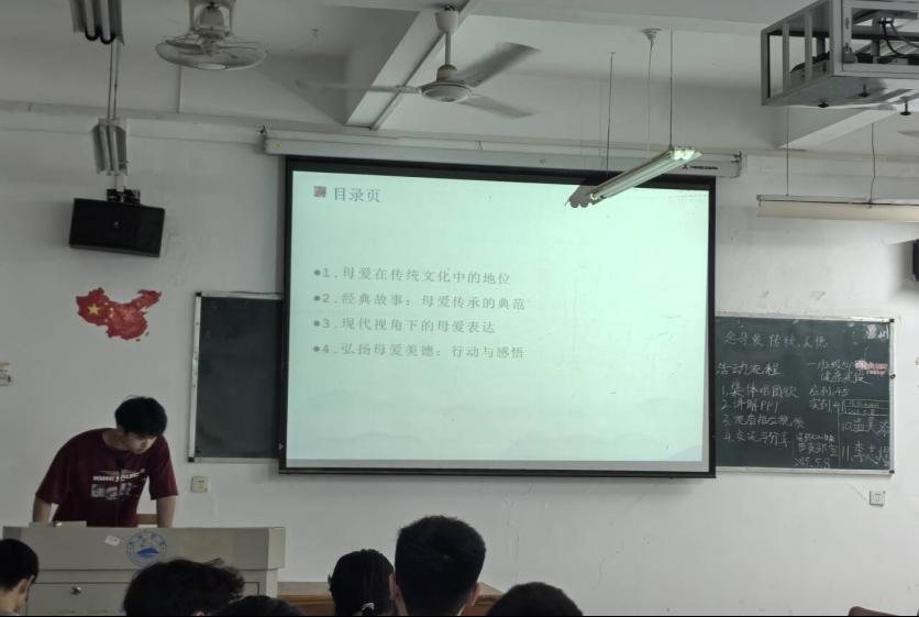 在齐唱团歌结束过后,团日活动准时开始。各班团支书和组织委员组织各班开展“念母爱,传美德”团日活动,主讲人围绕母亲节的历史脉络、精神内核及时代价值展开叙述,带领团员青年深刻理解母爱文化的传承意义,感悟母性精神的当代启示,激发其以爱为源的责任担当,树立感恩、奉献、奋斗的青春价值观。