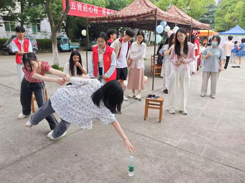 志愿者们通过主持趣味游戏、发放奖品等形式普及心理健康知识。活动现场设置五大游戏区域,分别是“看向这边”、“火眼金睛”、“蟹步爬绳梯”、“双人配合”、“心理能量板”,志愿者全程负责组织与引导。志愿者根据参与者的挑战进度发放奖品,奖品有棒棒糖、钥匙扣、折扇、定制水杯、解压木鱼等多种礼品。