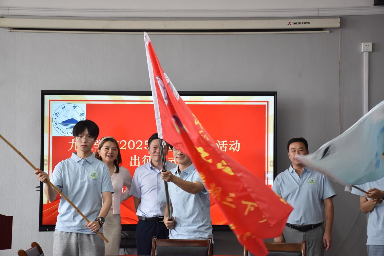 出征仪式上,肖国光介绍了2025年暑期社会实践的筹备情况及安排情况;学生代表王睿作了表态发言;与会领导老师分别为“三下乡”社会实践服务队、“万名大学生进千站”文明实践志愿服务队、“大学生在行动”环保科普服务队进行了授旗。
