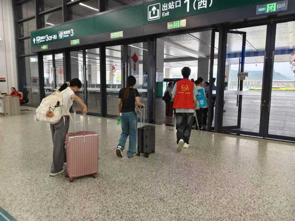 清晨,志愿者们身着统一服装精神抖擞地守护在火车站和校园的服务点处,以灿烂的笑容和耐心的解答迎接每一位新生。从车站引导、交通辅助到流程指引,从搬运行李到答疑解惑,志愿者们用热情消融新生的陌生感,用汗水减轻新生的负担。