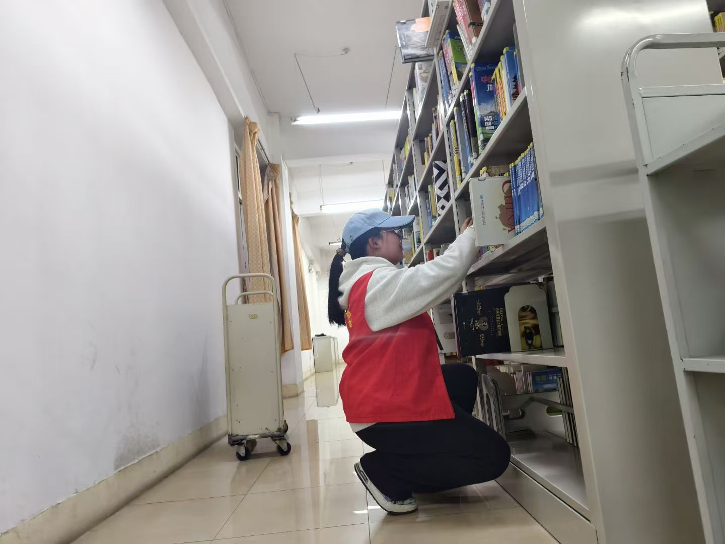 志愿者们的身影穿梭于静谧的图书馆内,迅速投入到有序的劳作中。书架前,轻柔的擦拭让落尘的层板重现光洁;阅览区里,专注的归位使错放的书籍各复其序。他们俯身于桌椅缝隙,清理藏匿的杂物;他们守候在期刊架旁,理顺散乱的报刊。全体成员以默契的配合与细致的动作,共同守护这一方书香净土,在保持馆内宁静秩序的同时,更让每一处角落都焕发出整洁与明亮。