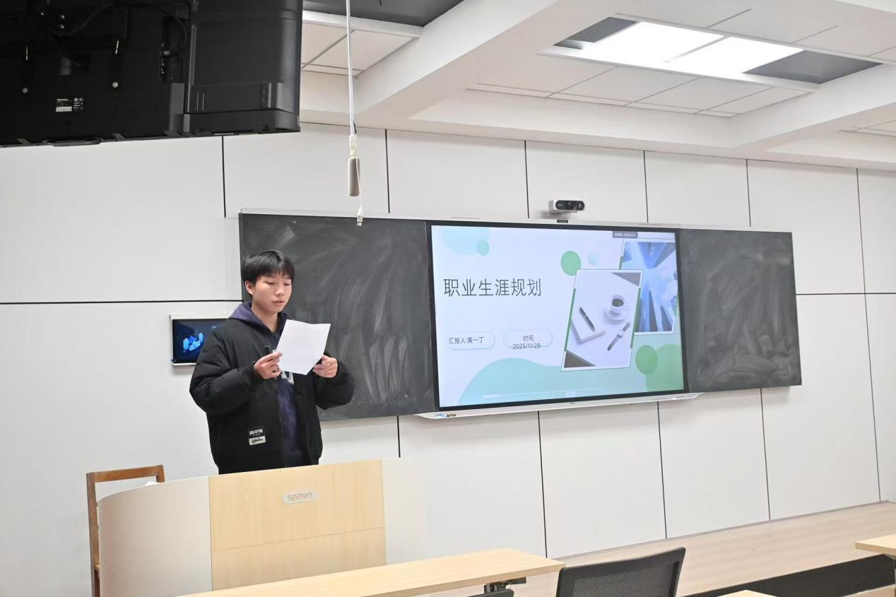 大赛评委由学院学生兼职团委副书记阮怡婷和经验丰富的学生代表涂锦昊担任。两位评委认真听取了每位选手的陈述,并从规划内容的科学性、可行性、创新性,以及现场展示效果、应变能力等多个维度进行了专业细致的提问与点评,给予了选手们宝贵的改进建议和中肯的鼓励,体现了朋辈引导的积极力量。