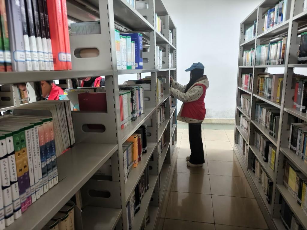 活动前,图书馆老师对志愿者进行岗前培训,明确图书分类、排架整理、环境清洁等工作内容。志愿者们迅速分组、各司其职,于书架与阅览区之间忙碌。大家根据老师安排耐心将散落书籍按索书号精准归位,同时细心擦拭书架、整理阅览桌椅、清扫卫生死角。过程中,同学们轻手轻脚、认真细致,以实际行动维护图书馆安静有序的氛围,用汗水擦亮书香阵地。