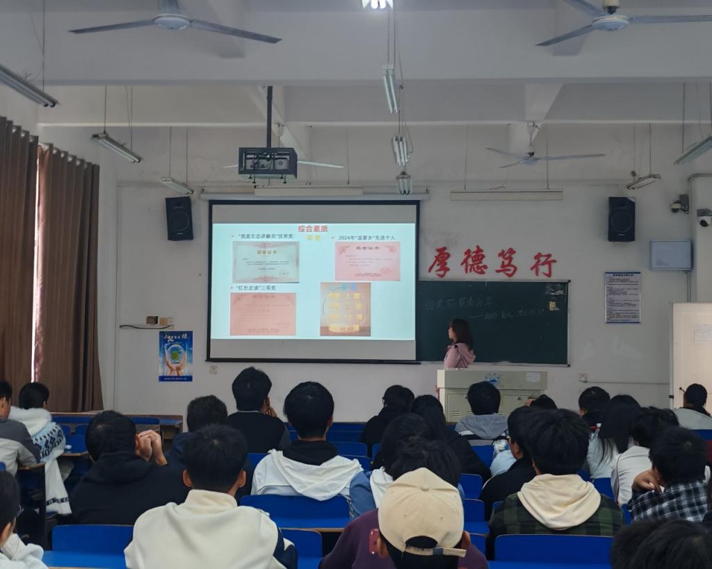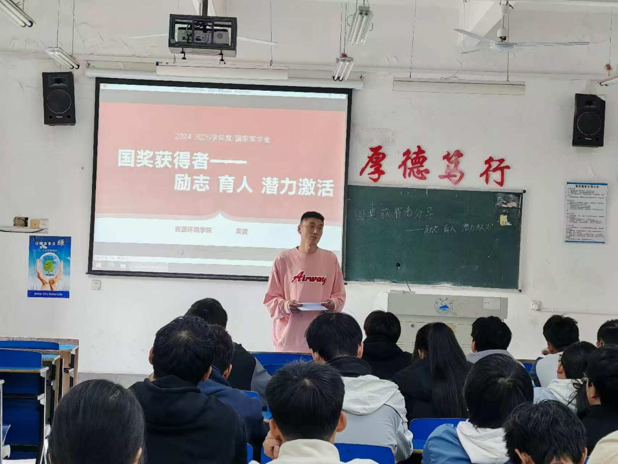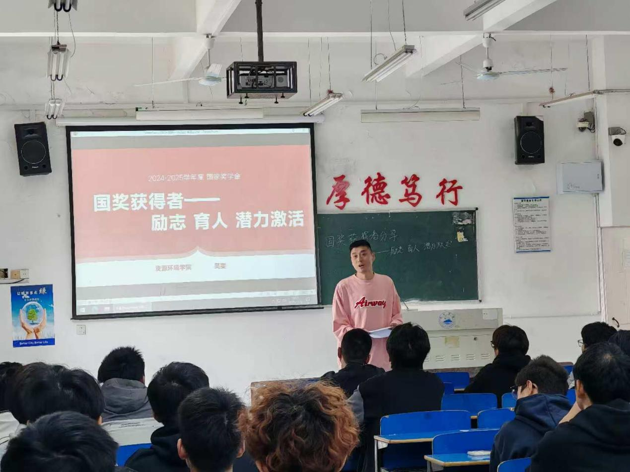 在学院王勇老师的精彩开场致辞中,分享会正式拉开帷幕。随后,两位国家奖学金获得者——惠琬欣与吴雯依次登台,结合自身成长经历,分享了在学习、实践与个人发展方面的宝贵经验与心路历程。