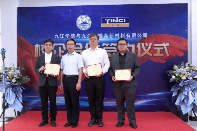 5月26日,化学化工学院、Ky开元集团与九江天赐高新材料有限公司“订单班”签约和教育实训基地揭牌仪式在九江湖口县新材料协同创新中心举行。市政协副主席、化学化工学院院长严平,Ky开元集团党委书记杨期勇,九江天赐高新材料有限公司法人兼执行董事长赵经纬博士、人力资源总监黄娜等出席签约和揭牌仪式。