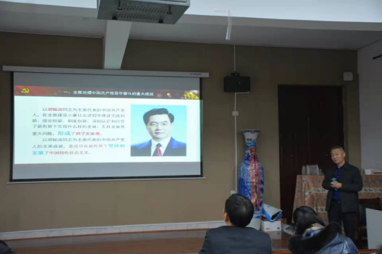 黄群从“全面把握中国共产党百年奋斗的重大成就”、“正确理解中国共产党百年奋斗的历史意义”、“深刻领悟中国共产党百年奋斗的历史经验”、“准确领会中国共产党继续成功的重要部署”这四个方面,深入系统解读了党的十九届六中全会精神。使全体教职工对党的百年奋斗重大成就和历史经验有了更加清晰的认识和理解,也深刻认识到党的十九届六中全会对推动全党进一步统一思想、统一意志、统一行动,团结带领全国各族人民夺取新时代中国特色社会主义新的伟大胜利,具有重大现实意义和深远历史意义。在新的历史时期,我们要更加紧密地团结在以习近平同志为核心的党中央周围,全面贯彻习近平新时代中国特色社会主义思想,大力弘扬伟大建党精神,以史为鉴、开创未来,埋头苦干、勇毅前行,为实现第二个百年奋斗目标、实现中华民族伟大复兴的中国梦而不懈奋斗。