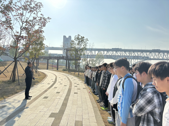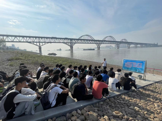来到浔阳江畔,“一江碧水向东流”的生态画卷跃入眼帘。《鄱阳湖与生态文明》课程负责人汤明教授向同学们讲述了习近平总书记的“长江故事”,念之行之,只为大江焕新颜,希望同学们牢记习近平总书记关于长江“共抓大保护,不搞大开发”的殷殷重托,树牢生态责任意识,打好专业基础知识,拓展实践能力,为长江绿色发展贡献学子力量。