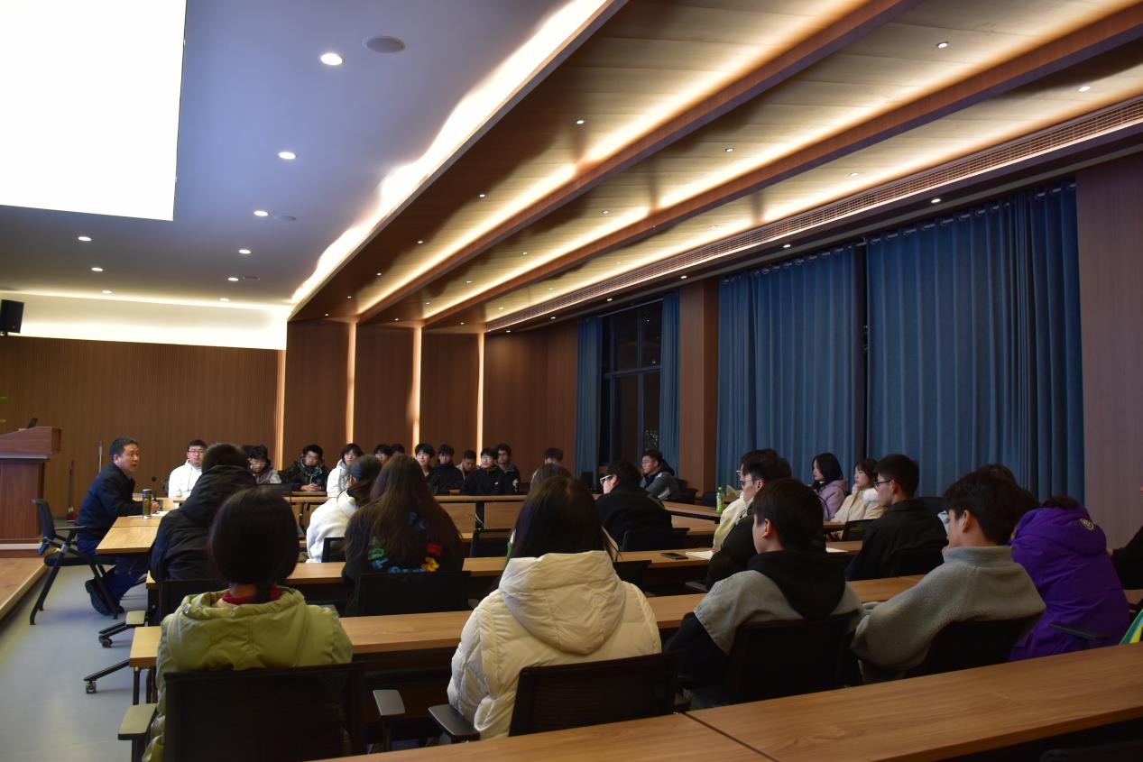 活动中,学院党委书记杨期勇首先以“梦想”、“奋斗”、“责任”、“感恩”四个关键词开场,鼓励学生做好个人发展和职业规划,只有志存高远才能“明大德、成大才、担大任”。随后,杨期勇书记与学生们进行了面对面的亲切交流,倾心、真情、用力为学生解难题、办实事,面对面倾听学生诉求,为学生们提供指导和帮助。他指出学院党政始终把青年学生工作作为学院的一项重要工作统筹考虑,摆在重要位置,常态化开展学院党委班子同学生面对面座谈,切实有效地倾听学生心声,解决学生合理利益诉求。杨期勇书记针对学生关注的重点——就业问题,系统介绍了学校和学院相关促进学生就业的措施和活动,详细介绍了学院各个专业的培养计划和就业方向,并指出当代年轻人消费观念的改变并分析阐述其原因,对此提出宝贵意见。