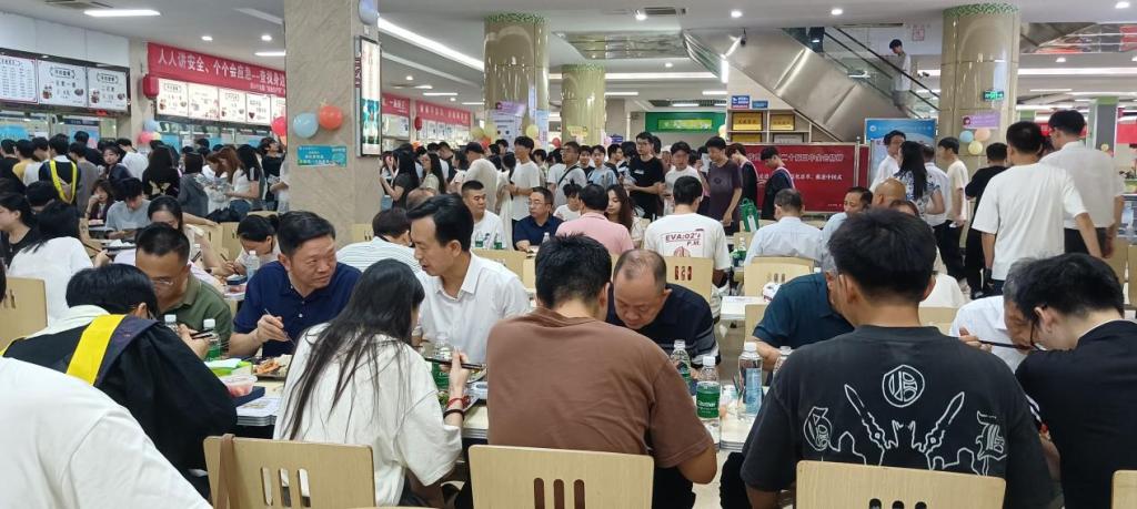 6月21日中午,副校长吴维勇、学院党委书记徐常龙及学生科负责人等一起来到学生三食堂,与毕业生代表一起共进午餐,师生们畅所欲言。毕业生们表达了即将离校的不舍之情,分享在校期间的学习与成长感悟,表达了感谢母校和老师的情感。吴维勇等领导为同学们在校期间取得的成绩感到自豪,并对同学们顺利毕业表示祝贺。希望同学们要不断提升自己的创新意识和能力,不断成长和进步,进一步实现自己人生的下一个目标。