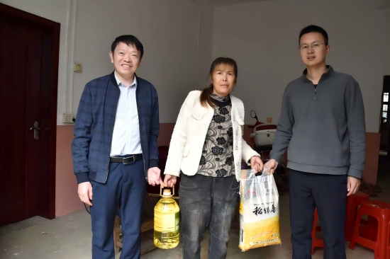 在脱贫户家里,学院党委书记徐常龙、学院院长冷清明等领导班与帮扶户拉家常、聊现状,详细了解他们的生产收入、外出务工、子女上学、健康状况、住房安全、饮水安全等情况,并送上了大米、食用油等慰问品。鼓励他们坚定生活信心,勇敢面对困难,依靠党的惠民好政策,努力改善生活条件。