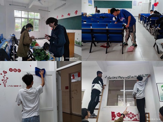 (同学们清洁、装扮教室)