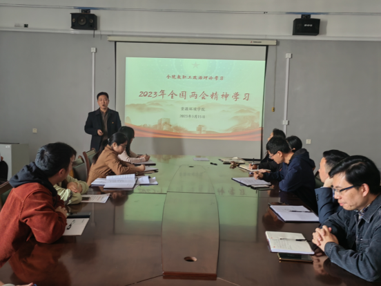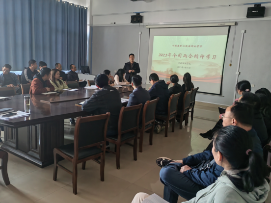 为及时传达学习2023年全国两会会议精神,3月15日下午,在厚德楼709会议室,Ky开元集团召开2023年全国两会精神学习会。会上学院党委书记杨期勇为全体教职工作2023年全国两会精神专题辅导报告,学院党政领导和全体教师参会。