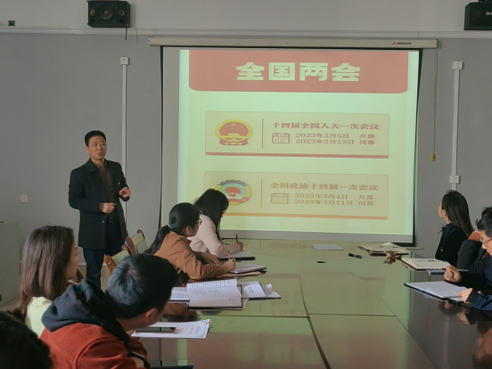 杨期勇从全国两会知识、政府工作报告要点、国务院机构改革方案三个方面结合自身学习体会与实际事例对2023年全国两会精神进行了传达和解读。